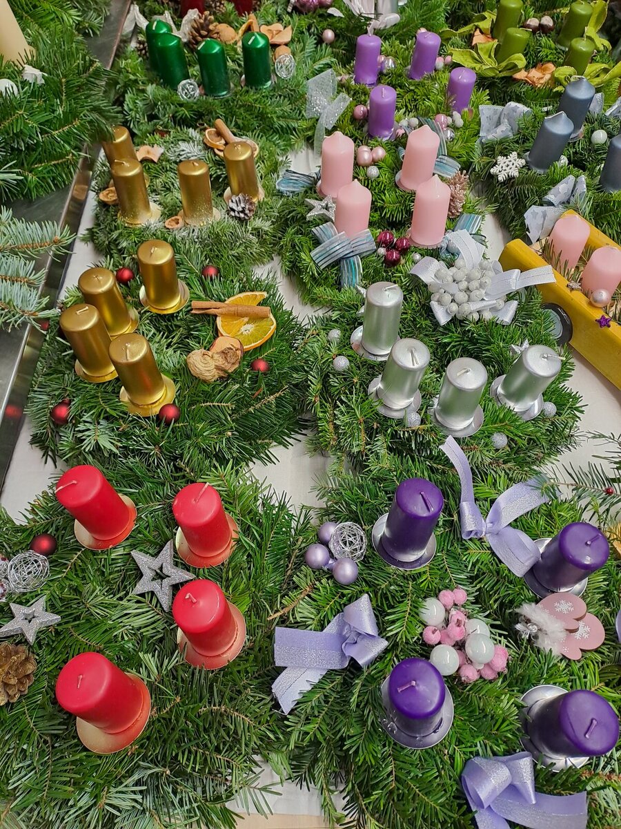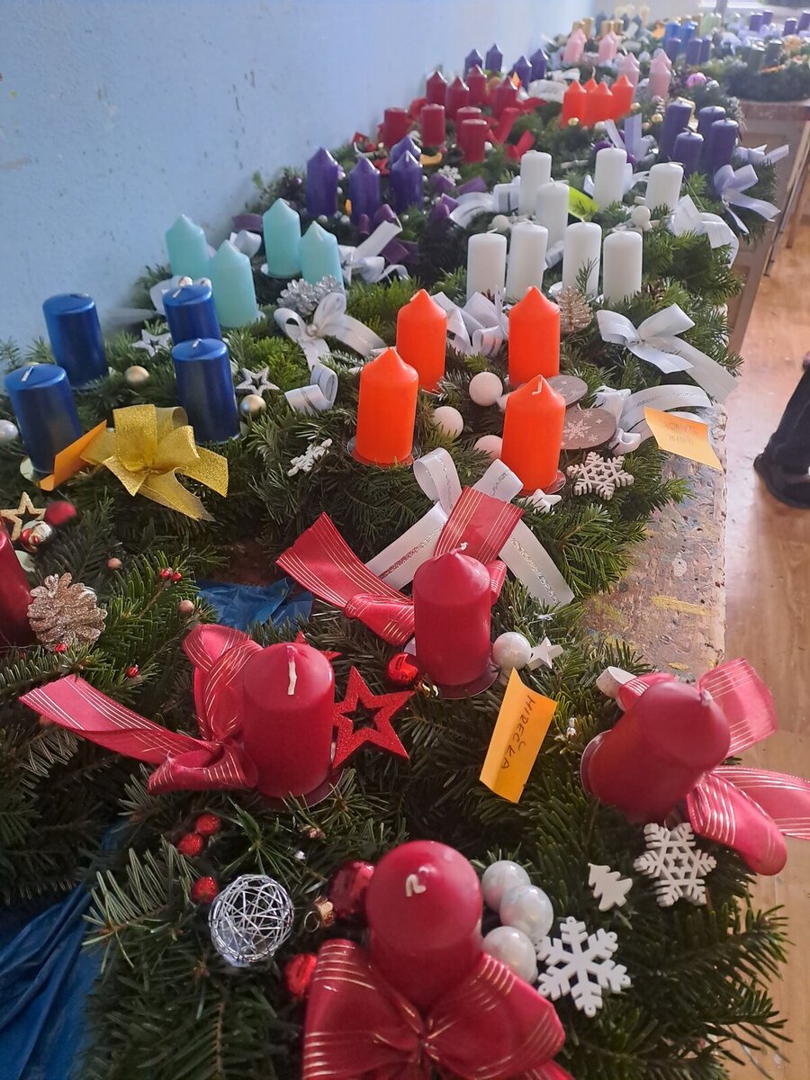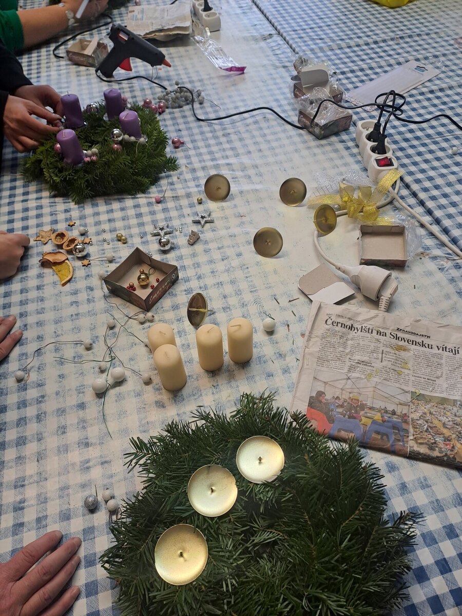 Adventní věnce vyrábí klienti AC dílen. Letos jim s přípravou pomohli studenti Gymnázia Polička.