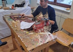 Ukázku výroby ručního papíru předvádí pracovnice AC dílen