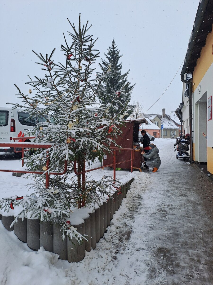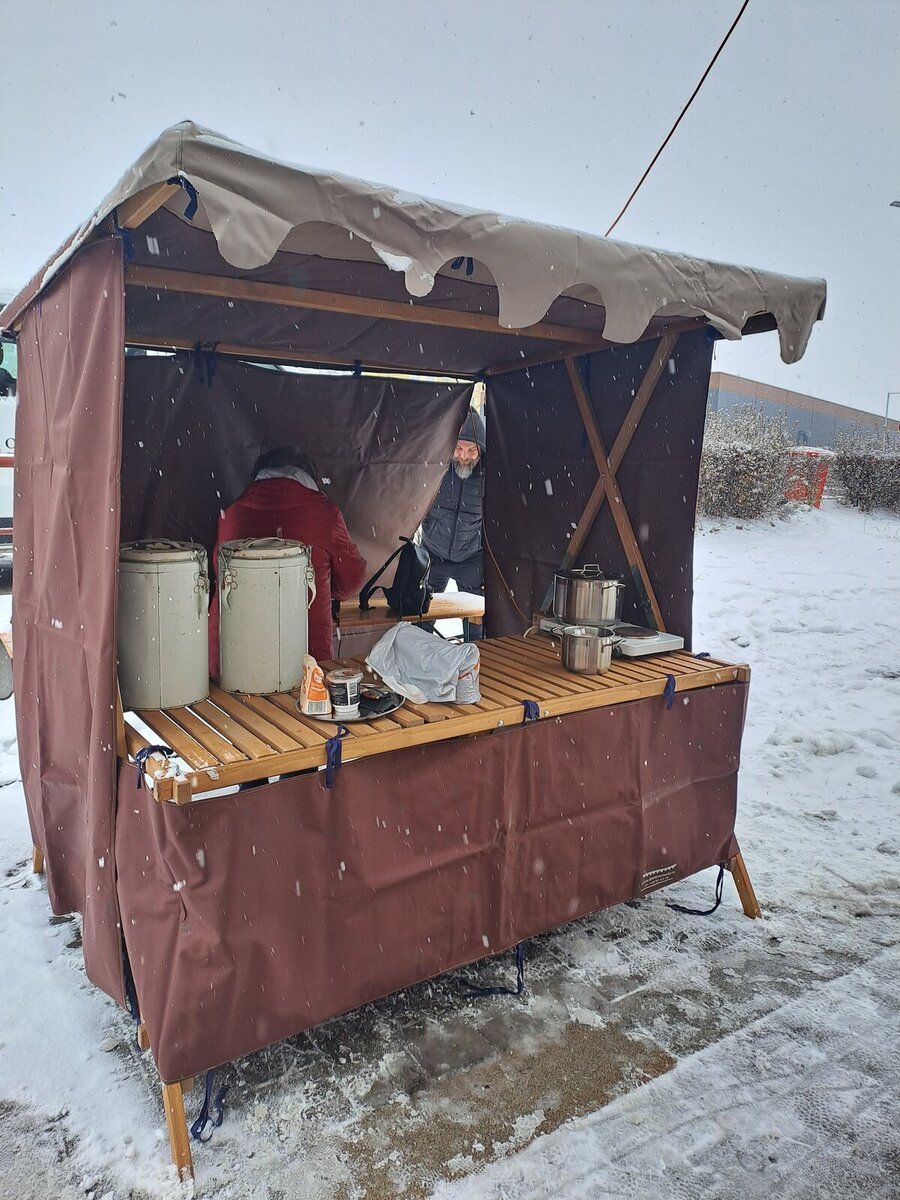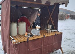 Letos krásně sněžilo, ve stánku jsme přichystali palačinky i punč na zahřátí
